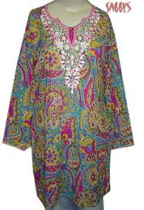 Summer wear Funky long kurta with beads hand work on floral printed fabric.
